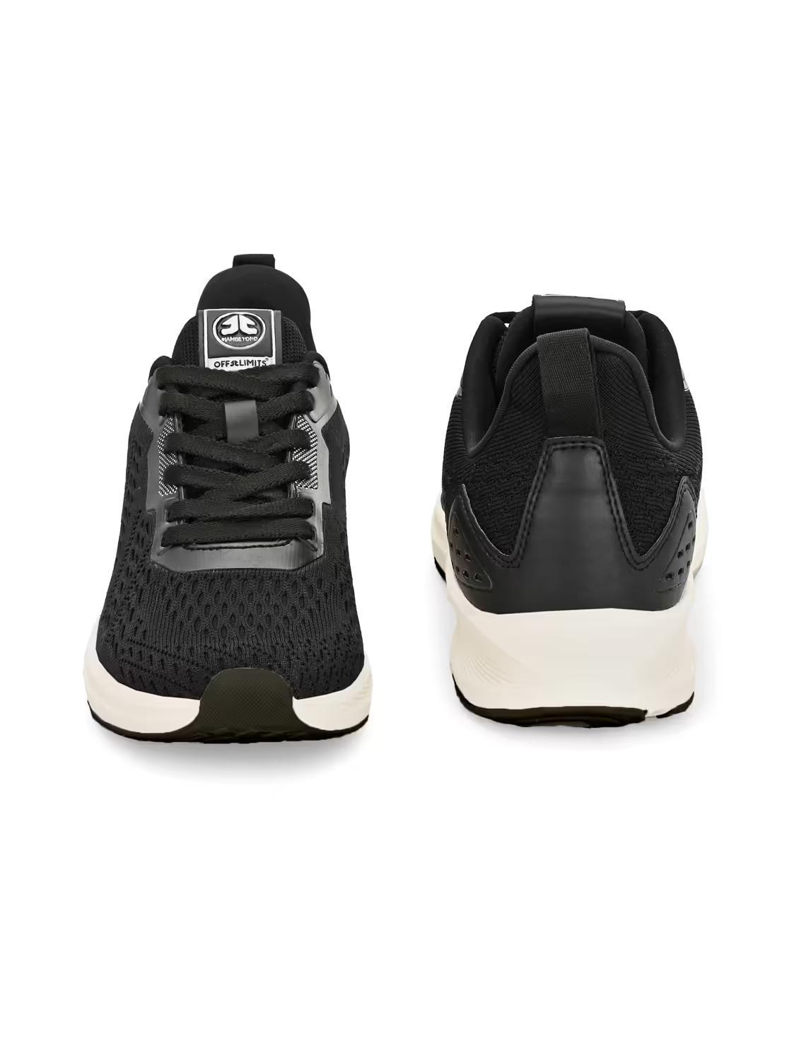 Black flyknit laceup sports shoes
