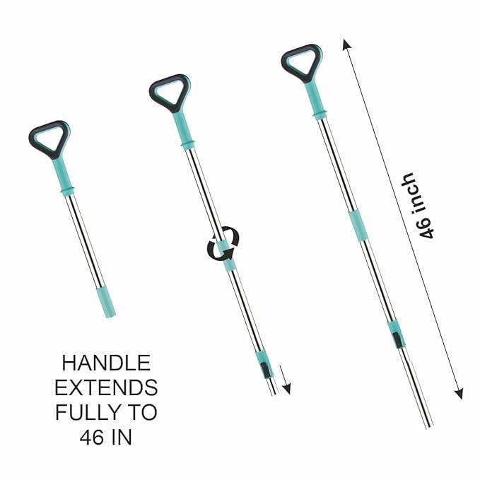 360-DEGREE ROTATING SPIN MOP HANDLE: Light-weight and adjustable stainless-steel mop handle reaches corner of the house - like under the table, below the bed, very easily.